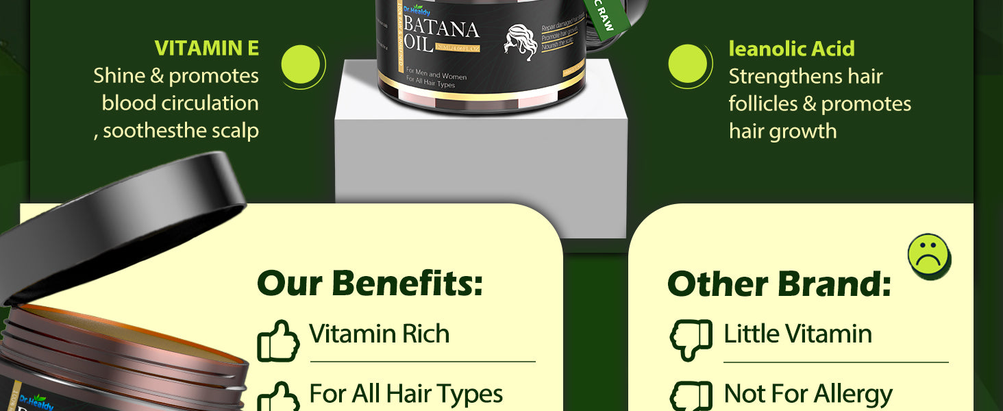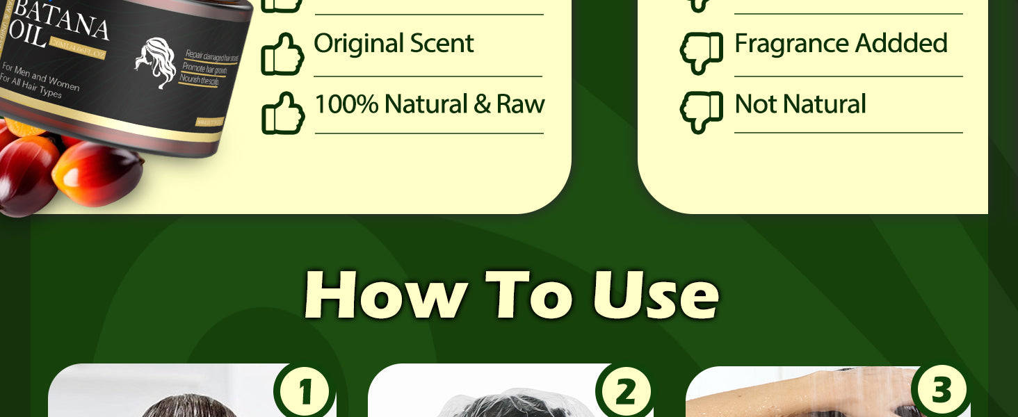 💪 Promotes Hair Growth: Cold-pressed Batana Oil retains natural nutrients, helping reduce thinning, hair loss, and widening parts.